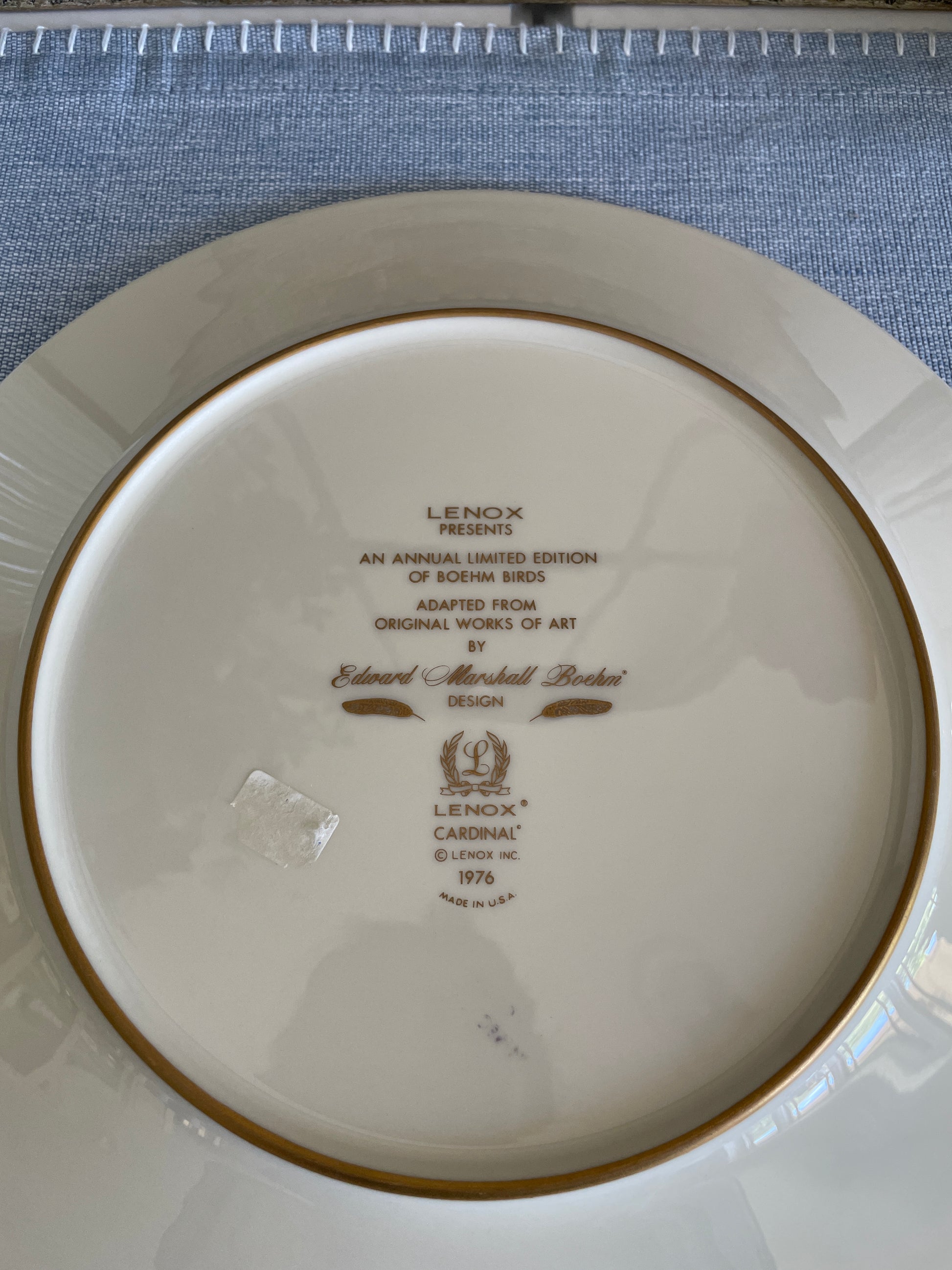 Copy of Lennox Boehm Birds, Cardinal 1976 Plate
