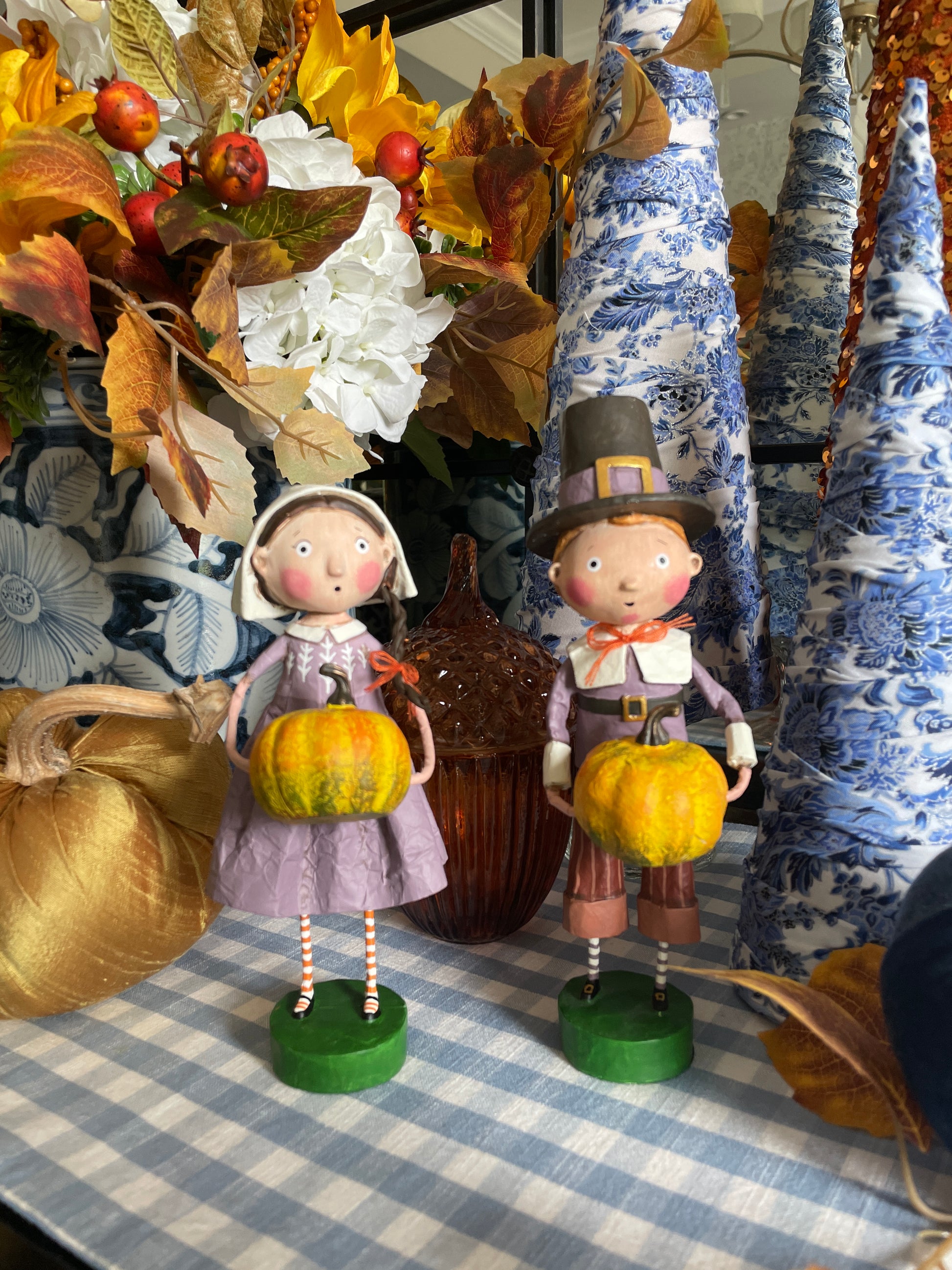 Add some Thanksgiving charm to your home with Mason & Molly Mayflower. These intricately designed figurines are a perfect addition to any collection. Let this charming pair bring a sense of wonder and whimsy to your home.